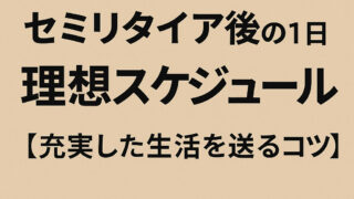 セミリタイア 「理想の1日スケジュール:セミリタイア生活の過ごし方」 セミリタイア後の時間の特徴 セミリタイア生活の最大の魅力は「自分の裁量で時間を使える」ことです。 しかし、自由すぎるがゆえに、だらだら過ごしてしまい「結局1日何をしていたのか分からない」という状況に陥る人も少なくありません。 ... 2025.09.30 セミリタイア