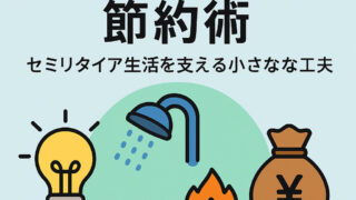 セミリタイア 「日用品を安く買う工夫:セミリタイア生活で必須の節約テクニック」 日用品は「毎月必ず出る支出」 トイレットペーパー、洗剤、シャンプー、ティッシュ… これらの日用品は必需品ですが、積み重なると毎月5,000〜1万円以上の出費になることもあります。 👉 工夫して購入すれば、年間数万円の節約... 2025.09.24 セミリタイア