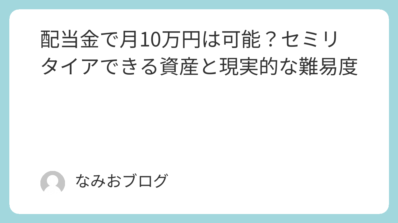 👉 配当金月10万円は可能だが、かなりの資産が必要です。