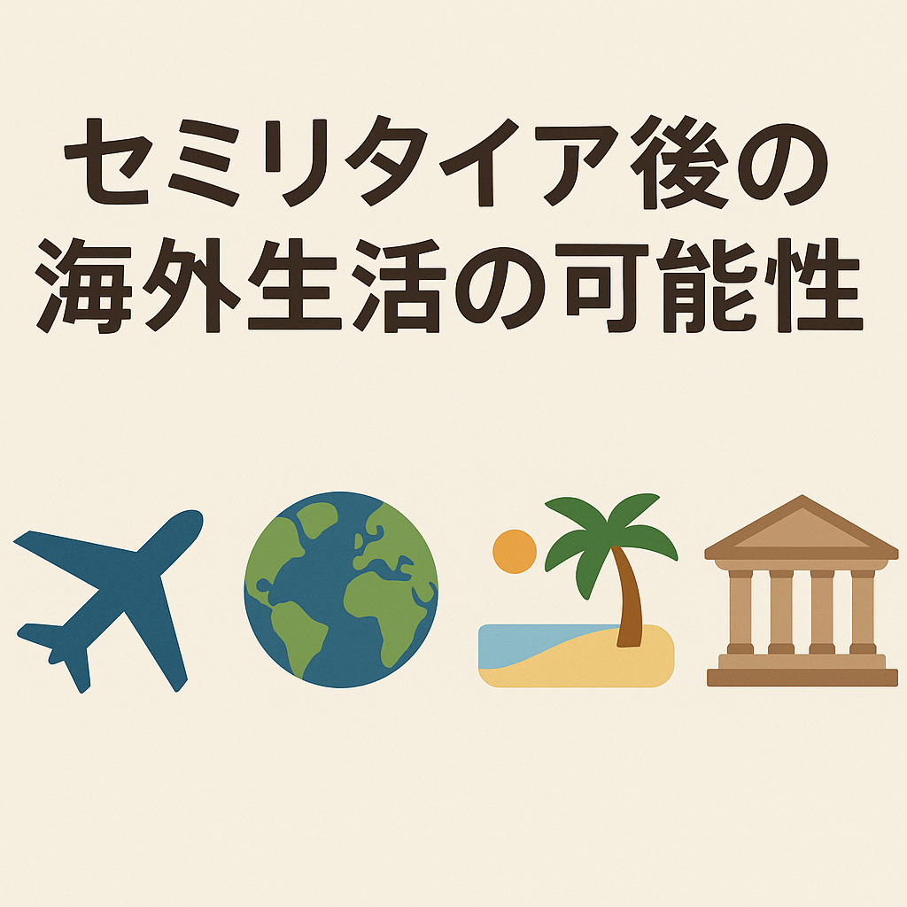 👉 自由な時間を「海外」という舞台で活用すれば、セミリタイア生活がさらに広がります。